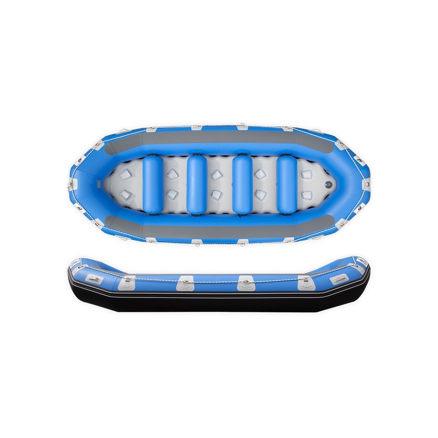 With its high-pressure drop stitch underside, Aquadesign’s latest Pulse PVC raft sets new standards in river performance. Its unique underside offers great stability and handles water ingress more effectively than a standard raft. Its lowered structure will allow you to navigate low-volume rivers. To maintain an optimal seating position, the Pulse comes with footstraps and non-slip bands on the upper section of the tubes.