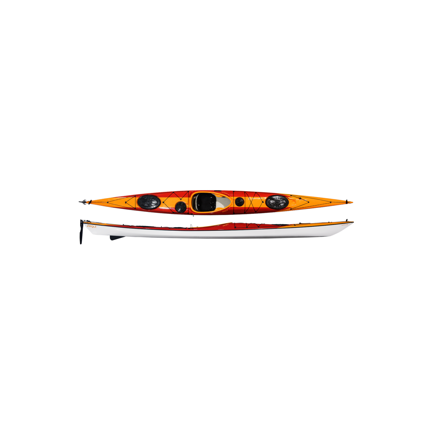 he Empower is a full bodied sea kayak made for long trips and expeditions. The Empower is surprisingly agile despite its length, has a very nice glide and it handles almost like a play boat when put on edge. The Empower has soft chines and a long water line. The hull’s profile is rounded and the rocker is moderate to handle big seas. The four hatches are all beautifully recessed into the deck and packs with ease for extended trips or just for a weekend getaway. The knee hatch holds gear like an VHF radio or cell phone and small water bottle. The day hatch has lots of room for other stuff needed while at sea. The Empower is like all Zegul Arrow models at home in the ocean where the paddler will feel comfortable due to the kayaks predictable performance. The Empower was used on a solo expedition, 6300km around Scandinavia in the spring and summer 2011. The kayak handled all kinds of seas on this major trip from the rough North Atlantic to the windy Baltic Sea. A great thing about the Empower is that it is a joy to paddle empty too! Most expedition kayaks are simply to big when not loaded.